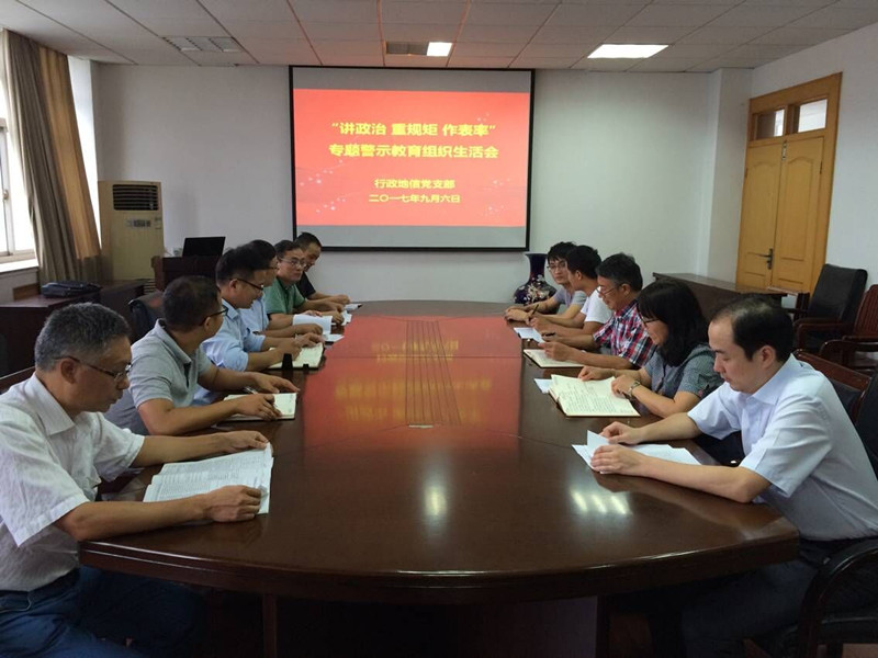 (行政地信党支部文/张玥 图/刘雪梅)9月6日下午,国旅学院行政地信党支部在四楼会议室召开了“讲政治、重规矩、作表率”警示教育专题组织生活会,学院党委书记贾冠忠作为普通党员参加了会议并指导,会议由支部书记赵冬梅主持。