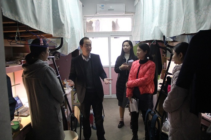 安全无小事,行动除隐患。地旅学院一直致力于构建由学院领导班子、学生组织、班级等多级联动的宿舍安全网络体系,切实增强学生的宿舍安全防范意识。学院党政领导与辅导员深入学生宿舍一线,了解学生学习生活动态,细致排查宿舍安全隐患,耐心倾听、互动交流,要求同学们增强自我保护意识,提升自我防范能力。此前,各班级还自行进行寝室安全用电检查,由班长和生活委员对各班宿舍进行了安全排查,对宿舍中存在的安全隐患提出整改意见,并安排相关班委督导整改,充分发挥学生在安全工作中的“自我管理、自我教育、自我服务”功能。