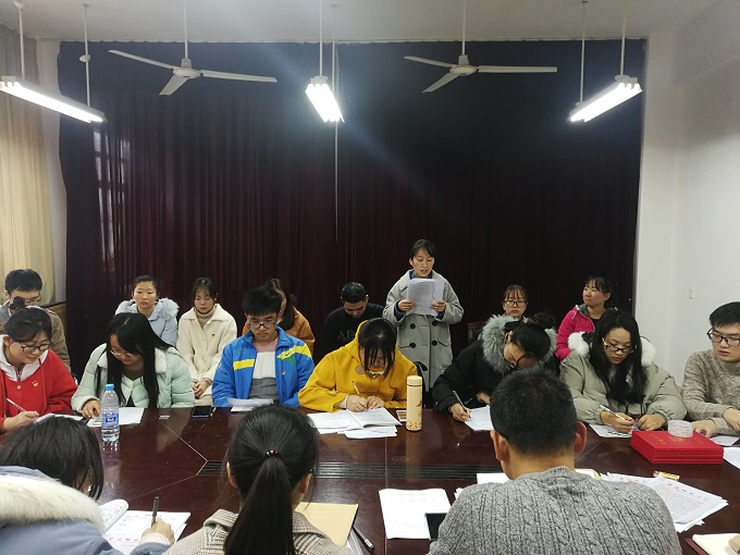 大会第一项,对汪静平、王越、张浩、江杜梅等4名发展对象能否加入中国共产党事宜进行讨论和表决。会上,4名发展对象依次向大会汇报其对党的认识、入党动机、本人履历、家庭成员和主要社会关系情况,以及需向党组织说明的问题。接着,入党介绍人依次向大会介绍发展对象的有关情况和对其培养教育情况,并对其能否入党表明了自己的意见。随后,支部书记向大会报告对发展对象的审查情况。汇报结束后,与会正式党员以无记名投票的方式进行表决,最终4名发展对象全部全票通过。最后,支部书记宣布决议,本支部同意接收汪静平、王越、张浩、江杜梅等4名同志为中共预备党员,并上报院党委审批。