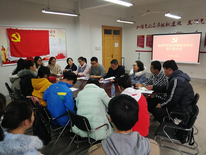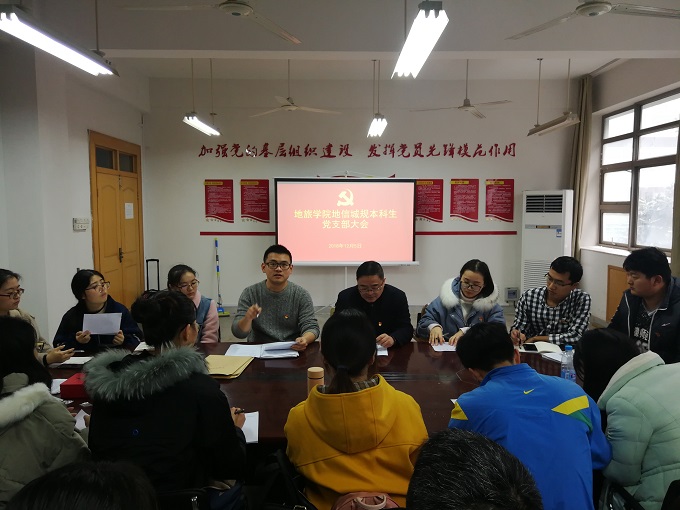 本网讯(地旅学院陈健)12月5日下午,地旅学院地信城规本科生党支部在学院学生党员活动室召开支部党员大会,讨论和表决接收预备党员和党员转正事宜。院党委委员、院长苏勤出席大会并指导、检查支部工作,党支部全体党员、发展对象以及部分入党积极分子出席大会。大会由支部书记陈健主持。
