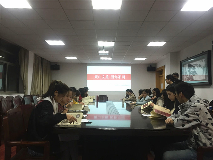 本网讯(国旅学院 韦银艳)11月14日,国旅学院"职海扬帆"系列招聘之黄山文化旅游股份公司专场招聘会于行政楼三楼会议室举办。黄山文旅黎阳in巷项目总经理贺晓侠、酒店项目负责人裴俊和2008级旅游管理专业校友周玲(人事负责人)亲自来我院组织宣讲和面试,三十余位毕业班学生参加此次招聘会。