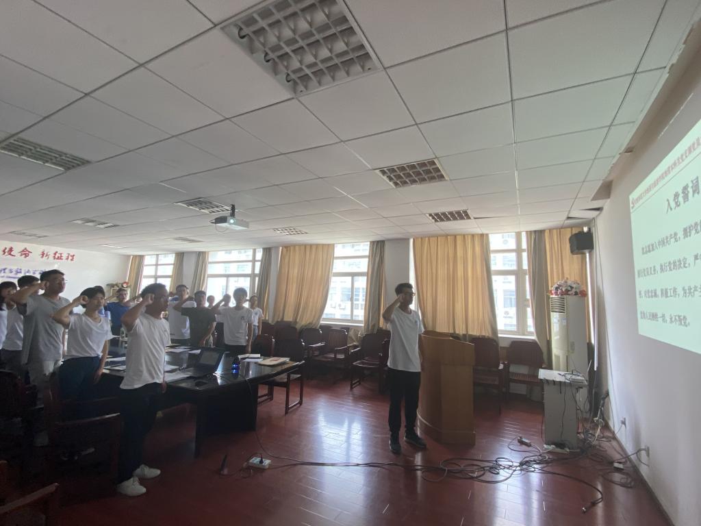 正式宣誓前,党支部书记齐小学向与会党员说明了习近平总书记对党员学习入党誓词的高度重视以及中国共产党成立以来入党誓词的演变和革命先烈、先进人物对入党誓词的坚守、践行。接着,全体与会人员在校十佳大学生怕尔哈提·图尔荪的领誓下,面向党旗、高举右拳,神圣而庄重地重温了一遍入党誓词。铿锵有力地宣誓声回荡在会议室内,激荡着会场的每一位毕业生党员。