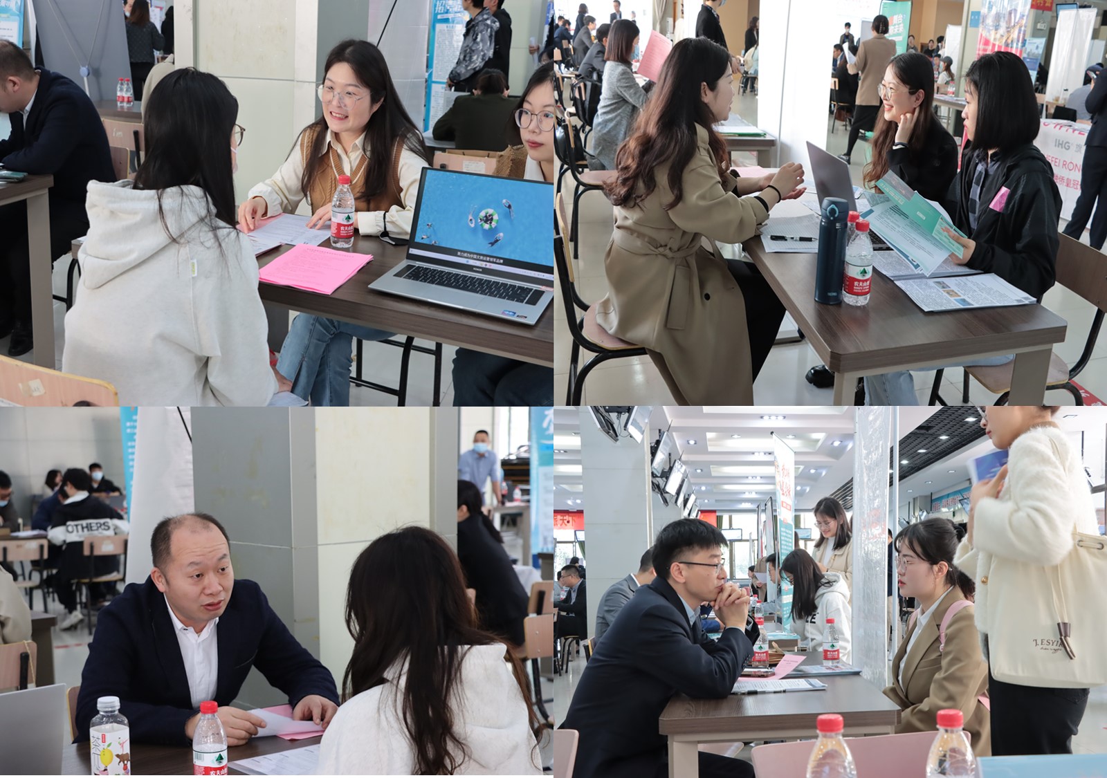 本届招聘会设有现场宣讲环节,企业HR、高管亲自上阵,借助多媒体设备展示其企业的发展理念和招聘要求,吸引大量应聘毕业生驻足观看。应聘者手持精心制作的自荐书和简历,穿梭在众多展台间仔细搜寻心仪企业,与企业HR进行深入沟通,主动了解用人单位的情况。