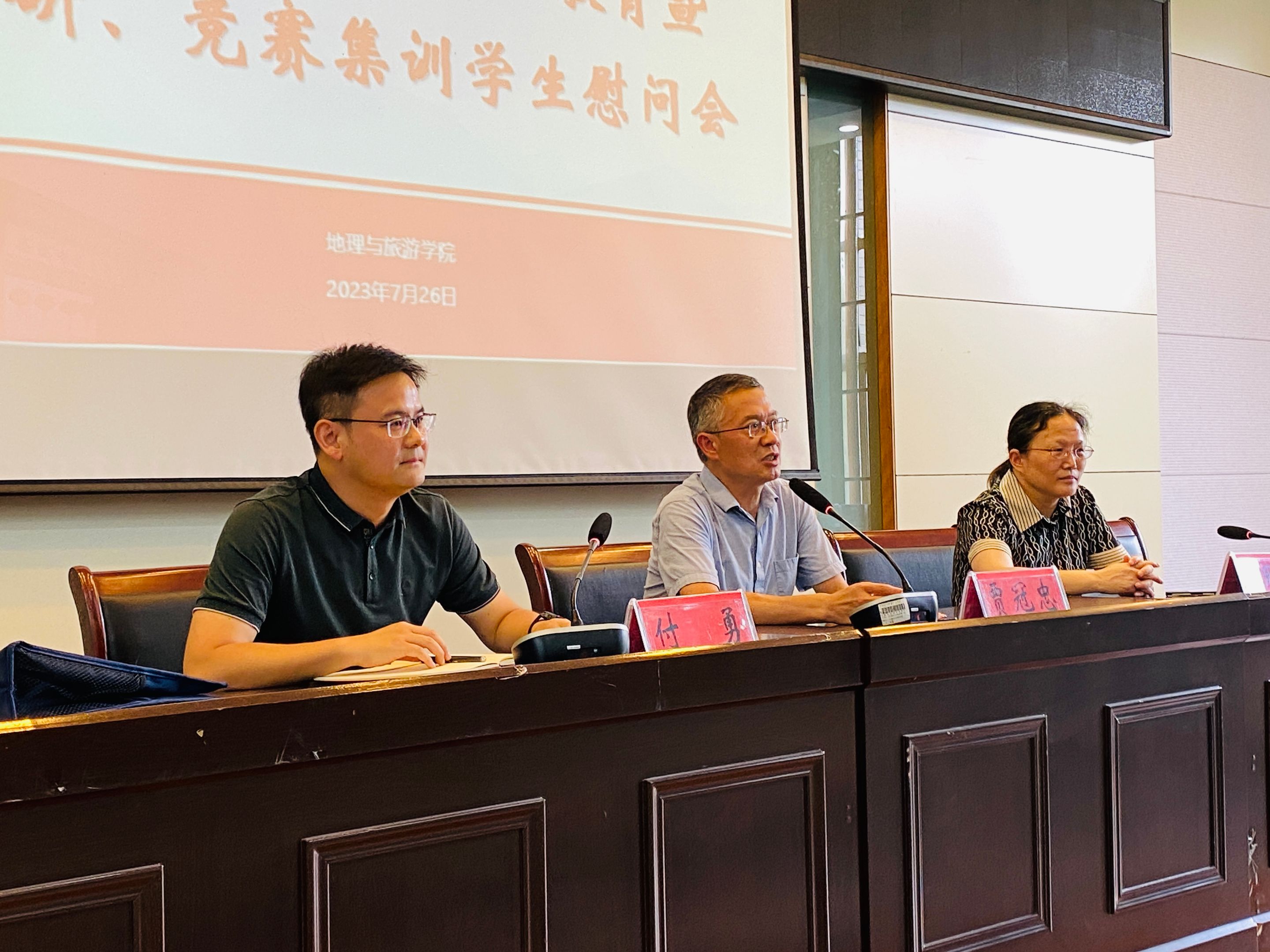 7月26日上午,地旅学院在实验楼101报告厅举行暑期留校学生安全教育暨2024届考研、竞赛集训学生慰问会。地旅学院党委书记贾冠忠、院长方凤满、院党委副书记付勇、2020级本科生辅导员以及全体暑期留校考研、竞赛集训学生参会。