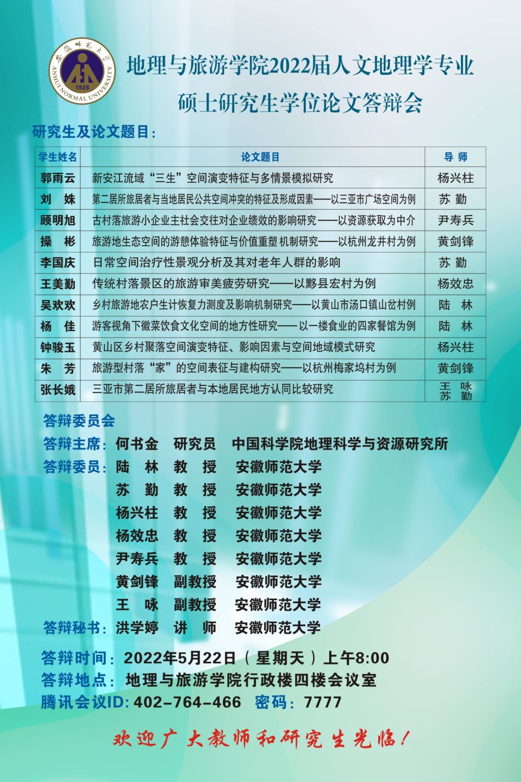 银河galaxy集团2022届博士、硕士研究生学位论文答辩信息公告 (第二批)