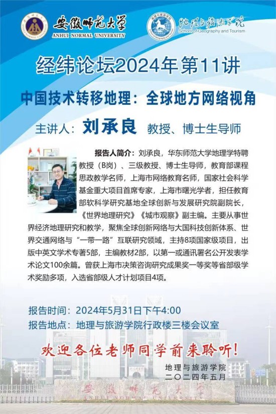 【学术预告】经纬论坛第43讲:中国技术转移地理:全球地方网络视角