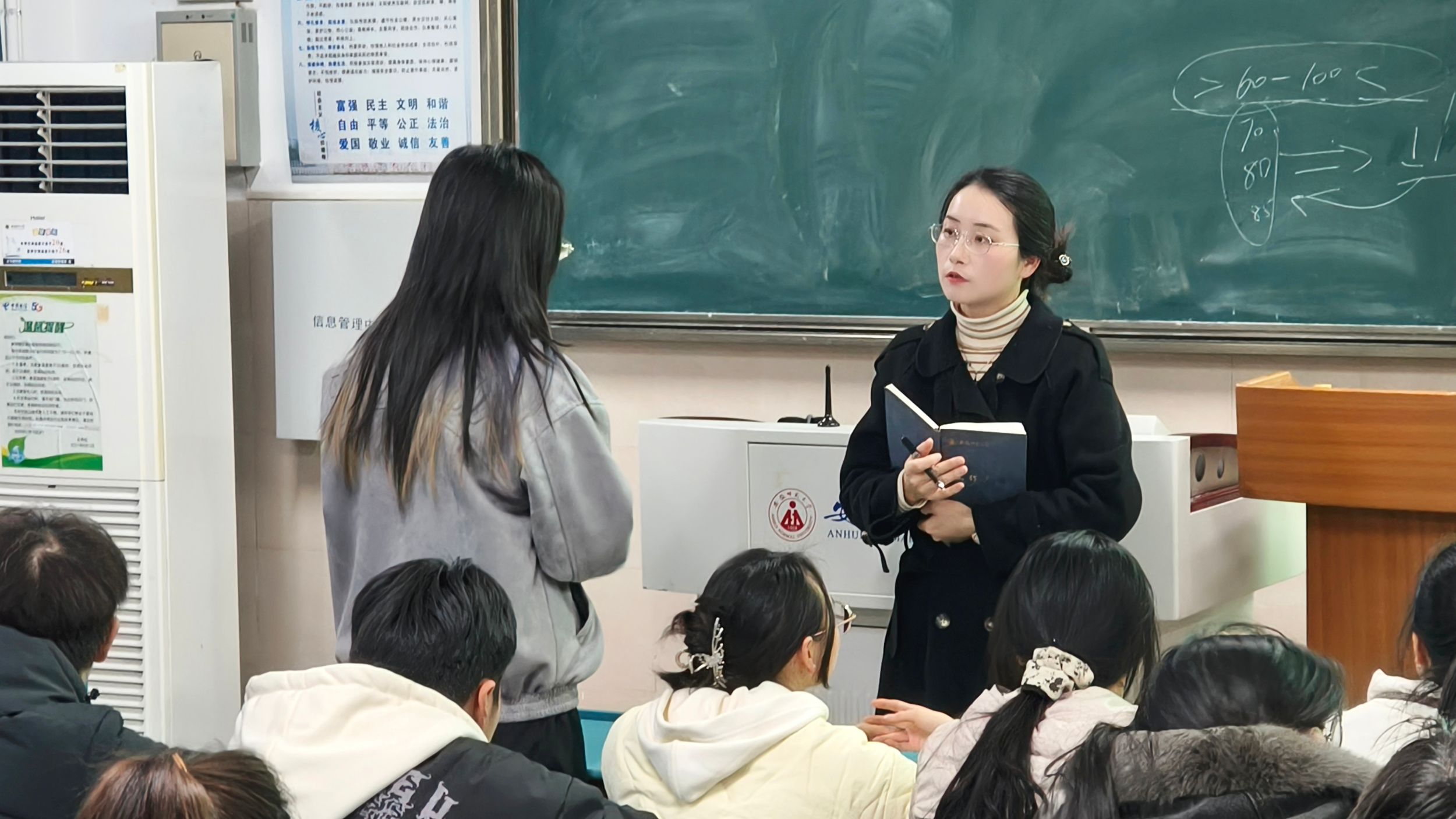 会议伊始,彭媛媛督促班委要以身作则,起好带头作用,严格落实“手机入袋”。此外,她还强调班干部团结协作的重要性,有序地开展班级活动,及时解决班级中出现的问题,共同促进班级的进步。