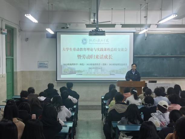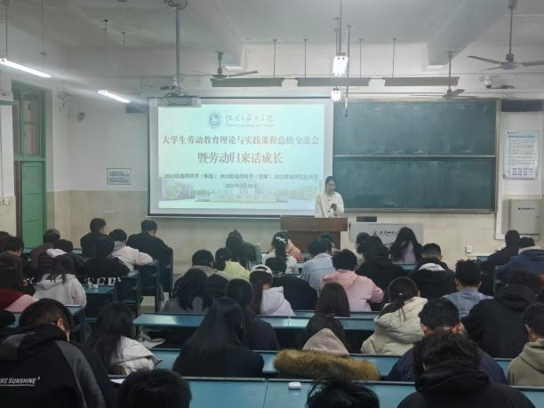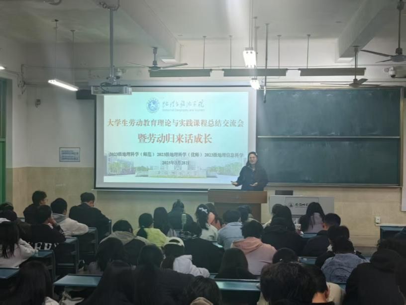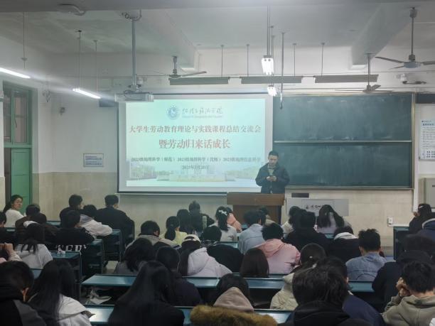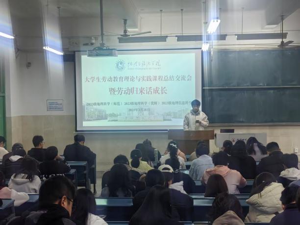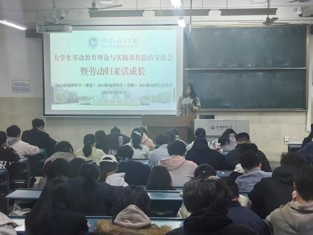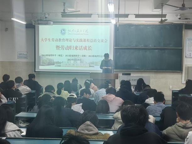 (本稿讯 唐丹丹)2025年3月28日下午,行知楼2010101教室,成功举办银河galaxy集团 “大学生劳动教育理论与实践课程 —— 暨劳动归来话成长” 劳动周总结交流会。本次活动由学院辅导员齐小学和吴楠主持,2023 级地理科学(师范)、地理科学(优师)及地理信息科学专业全体同学参与,会议旨在总结本周的劳动周实践成果。