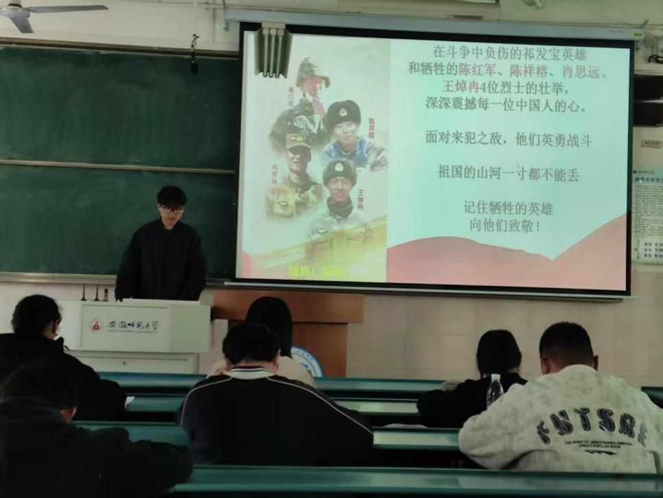 (本稿讯 朱睿文 殷思远)清明节前夕,安徽师范大学2023级地理信息科学专业两班级在教学楼2040303教室举办了两场意义非凡的清明主题班会。此次班会以“缅怀先烈,致敬英雄,砥砺前行”为主题,旨在让同学们铭记历史,传承先烈们的爱国精神,珍惜当下幸福生活。