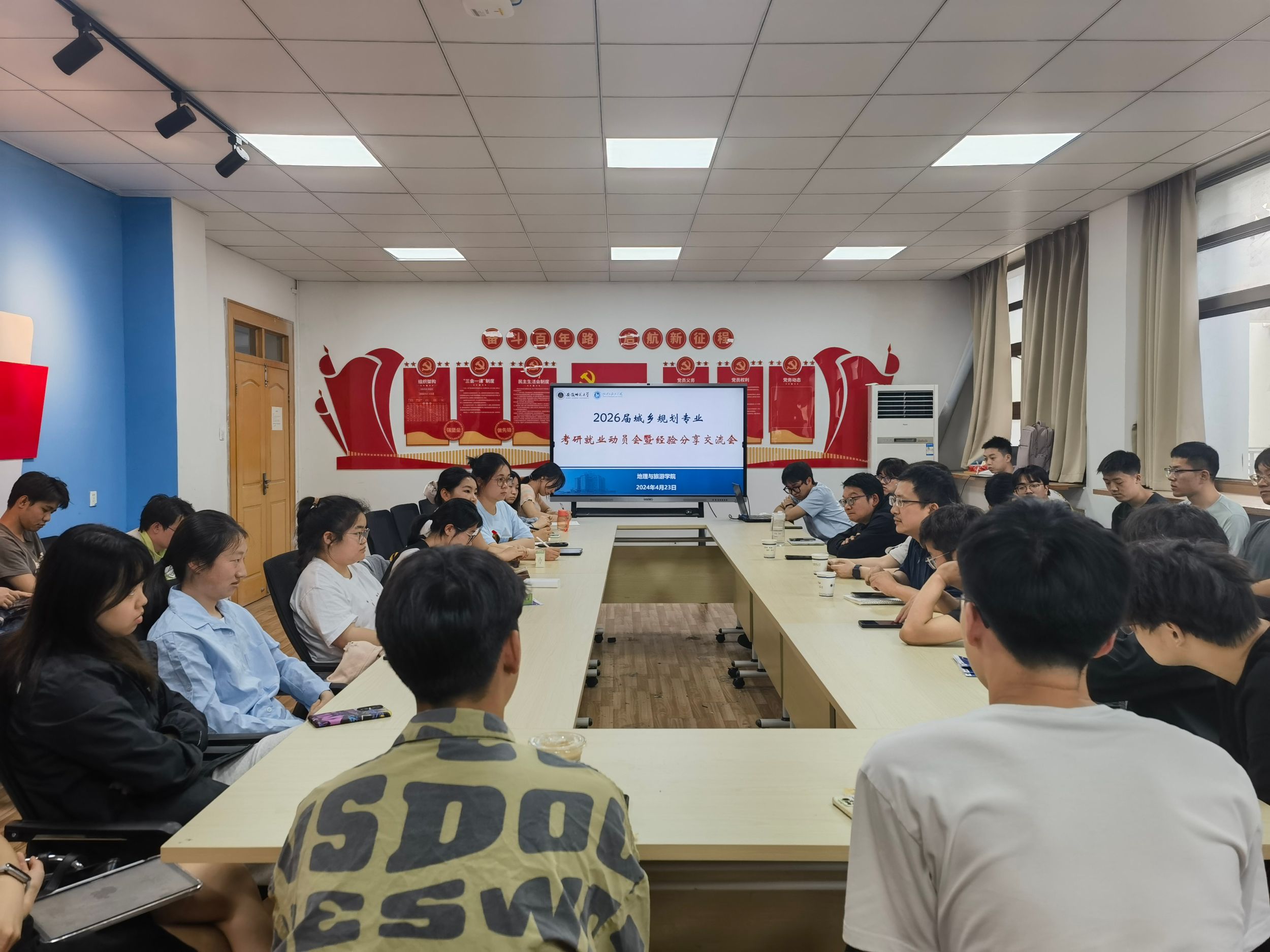 本网讯(王冰冰)4月23日下午,银河galaxy集团在行政楼二楼学生活动中心召开第十期“学·思·享”大讲堂——2026届城乡规划专业考研就业动员会暨经验分享交流会。本次分享会由辅导员操晶晶主持,城乡规划专业教师王原、包善驹、金莹莹、黄秋实及2026届城乡规划专业全体同学参与。本次分享会旨在深化学生对专业领域的认识,帮助学生降低升学、就业焦虑,明确未来的发展路径。