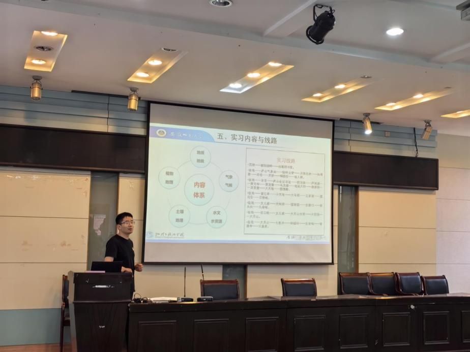 最后,苗雨青对本次动员大会进行了总结。他再次特别提醒学生要注意野外安全防护,严格遵守团队纪律,出发前认真准备好实习工具,确保实习能够安全、顺利地进行。同时,他鼓励同学们将课堂理论积极融入实地观察,在实践中不断加深对知识的理解和掌握。会议在全体教师对本次实习的殷切期待中圆满结束,大家共同预祝同学们在庐山实践中能够实现专业知识与团队协作能力的双重提升,满载而归。