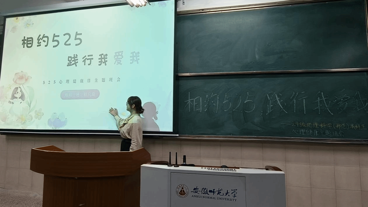 (地旅学院 刘紫凤、何诗雨、曹文瑾、万思琪)5月25日,为了普及心理健康知识,增强学生的心理调适能力,2024级地理科学(师范)、土地资源管理和城乡规划专业分别在各自教室成功举办了以“相约525 践行我爱我”、“面向阳光 幸福生活”、“每一个当下的你,都是最好的你”和“悦纳自我 关爱心灵”为主题的系列心理健康主题班会。
