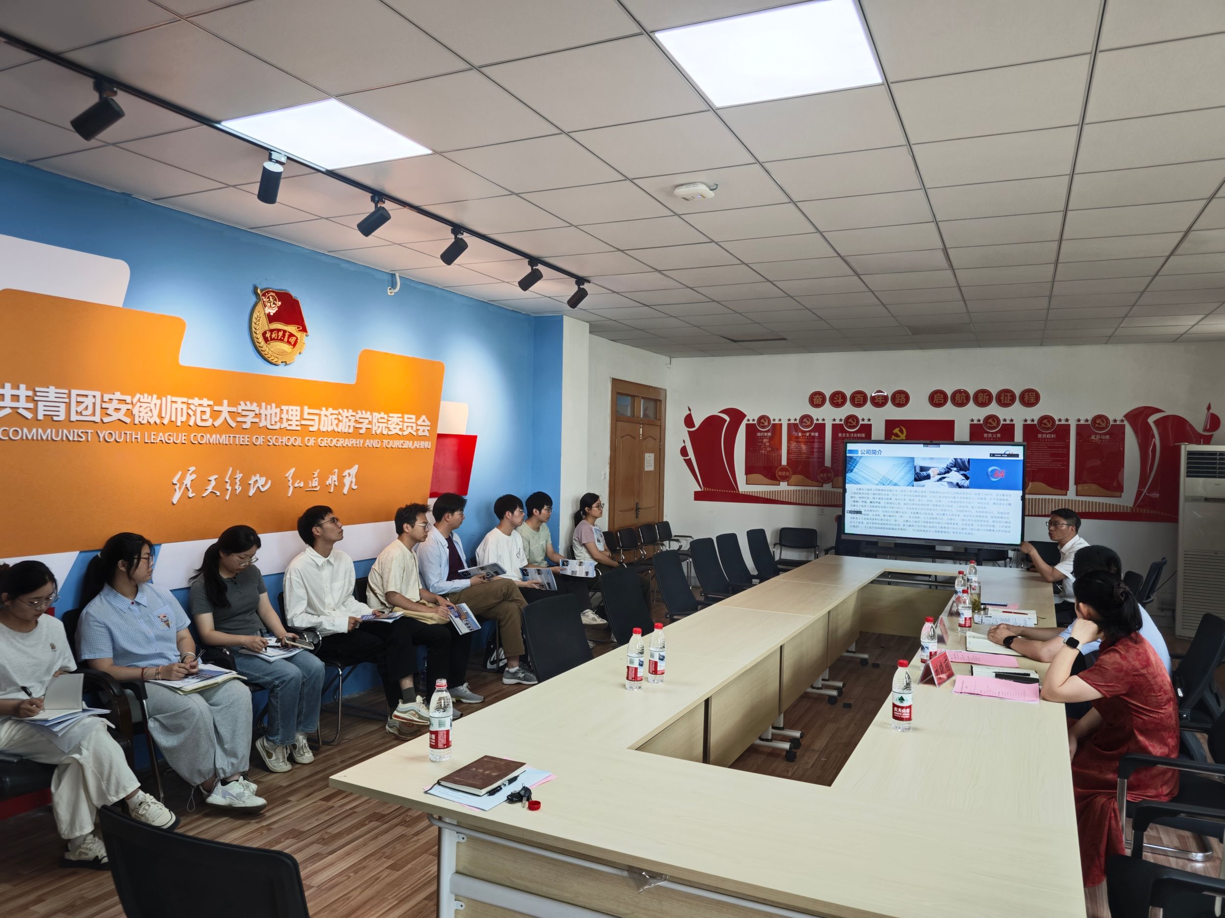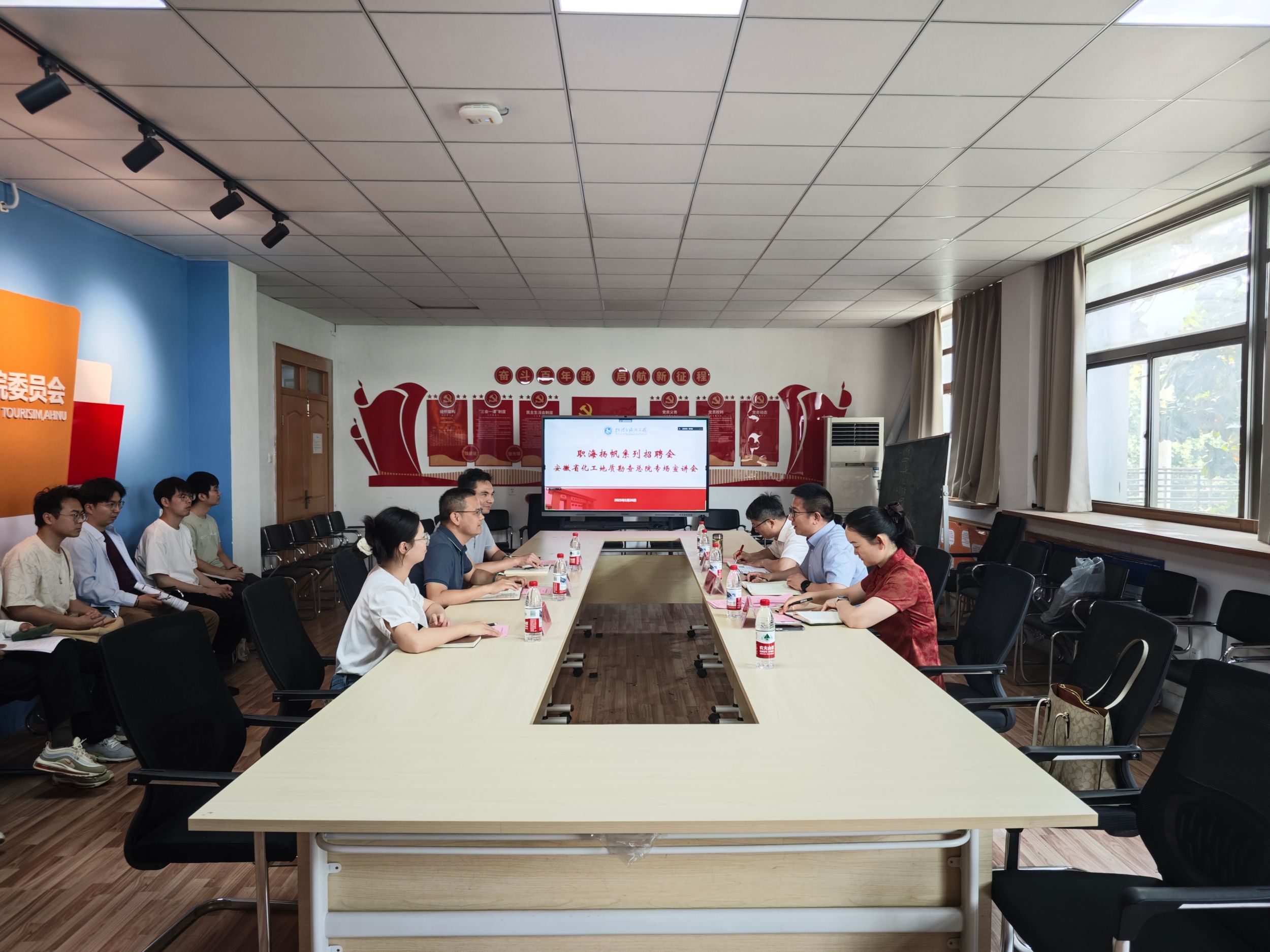 为积极搭建毕业生与优质用人单位沟通桥梁,拓宽就业渠道,助力2025届毕业生高质量就业,5月26日下午,“职海扬帆”系列招聘会安徽省化工地质勘查总院专场招聘宣讲会在我院二楼活动室举行。学院党委副书记付勇,土地资源管理专业负责人费罗成,安徽化工调查监测分院院长、勘查院总经理言龙,安徽化工勘察院常务副总经理邓施宝等及相关专业毕业生参加本次活动。