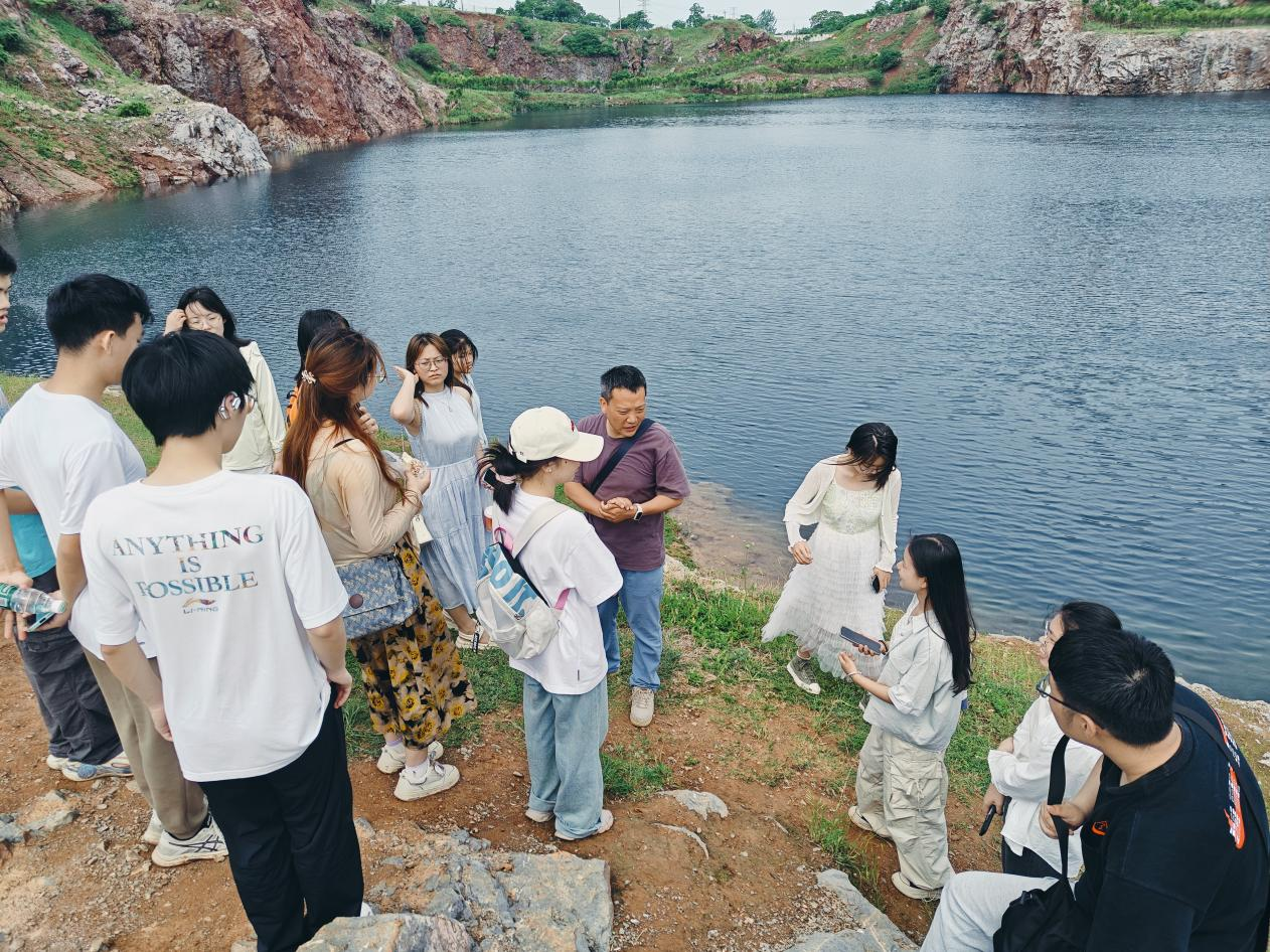 清晨九时,考察团队于湖畔集合。地旅学院地理科学专业教师杨立辉首先向学生讲解该湖的历史背景:“此处原为白马山石灰岩矿坑,矿场关停后经自然修复形成湖泊。此前公众对湖水颜色存在疑虑,质疑湖水颜色可能与重金属污染有关。但经专业机构检测证实水质安全,只是硬度偏高。”