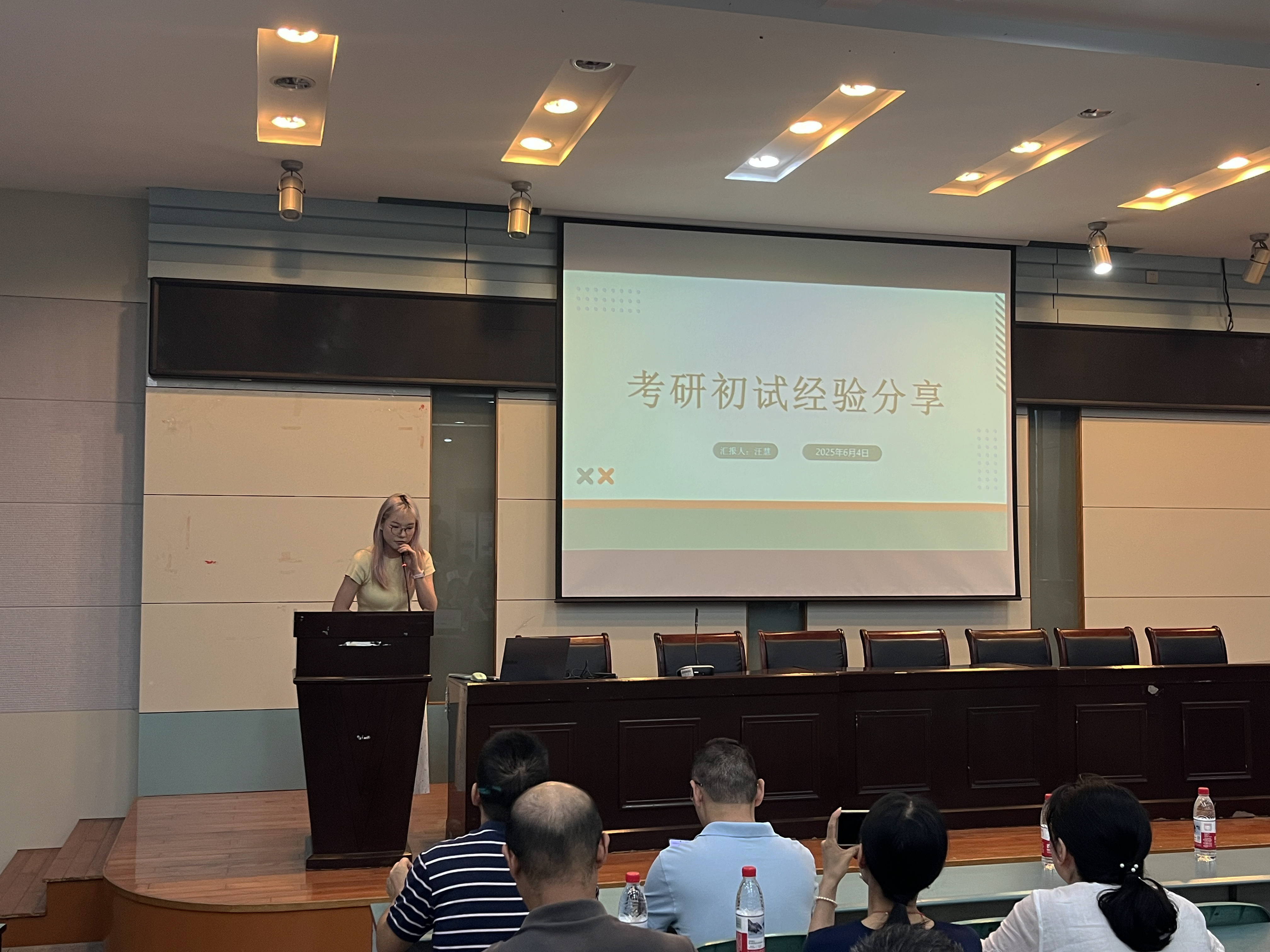 榜样引领,传递实战经验。学院特邀2025届考研上岸及优质就业的学姐进行分享。考入南京师范大学的汪慧以“如何准备考研初试”为主题,系统详细的讲述了自己考研备考历程。她从院校选择到不同科目的备考过程等方面介绍了自己的学习规划和心得体验,为在座的同学们提供了参考。她鼓励学弟学妹们在备考过程中保持平和心态,默默耕种,静待花开。考入安徽师范大学的刘晓萌聚焦考研时间规划,详细分享了考研备考期间的时间规划与复习策略,并针对各考试科目和网络课程选择提出实用建议。她不仅分享了高效备考的资料与方法,还结合自身经验,分享了研究生考试的应试方法和注意事项。周复则向同学们分享了考公的个人经验,讲解了考试中的时间节点、备考要点,分享了从个人经历出发的感悟体会,为有考公意向的同学提供了清晰的备考方向。