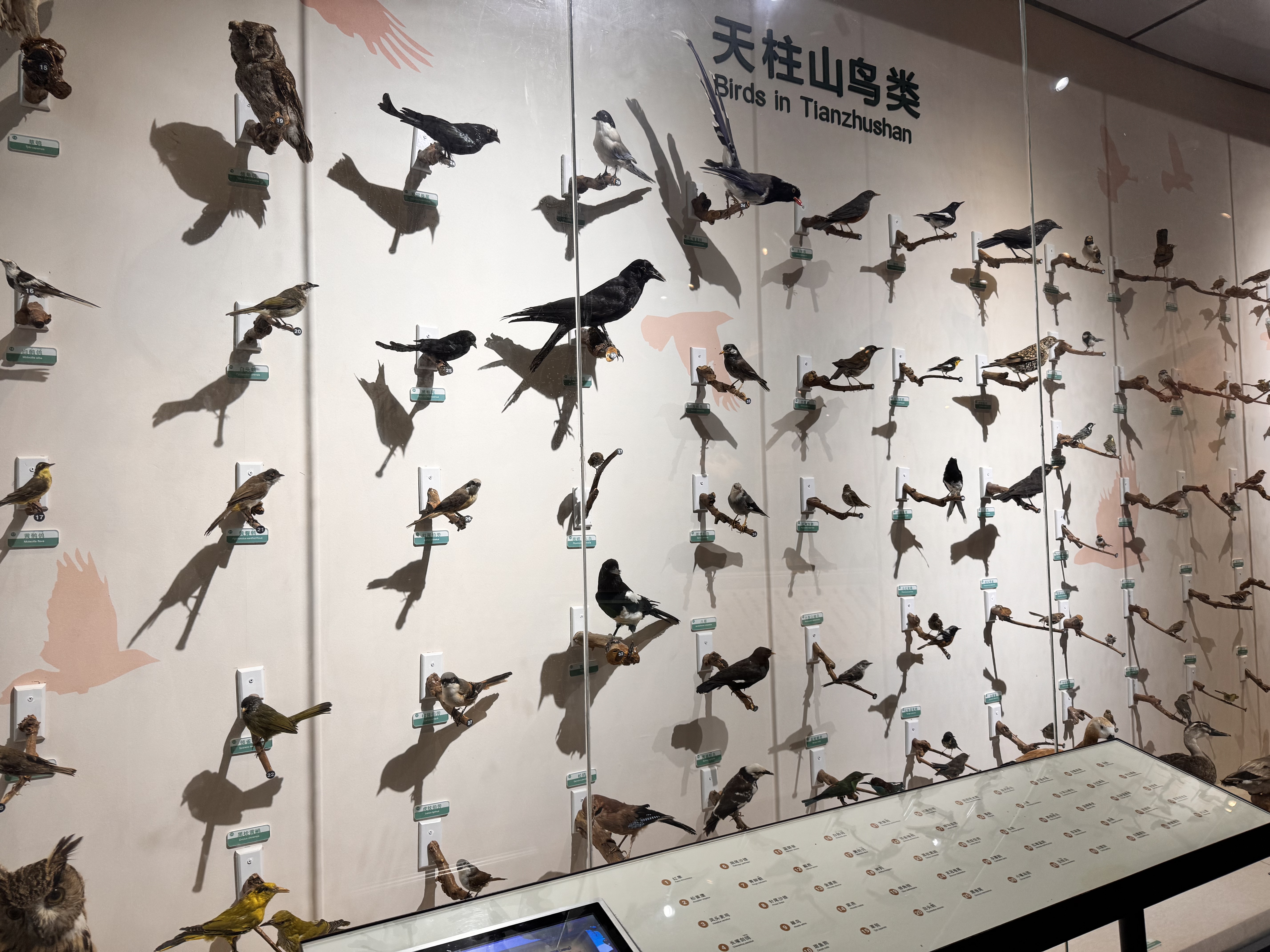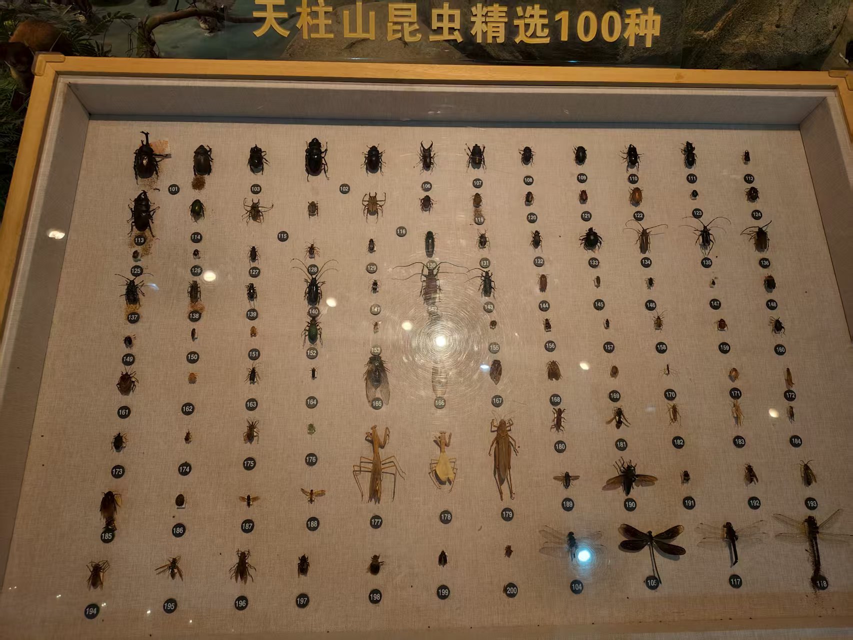 午餐过后,实践团队在杨立辉的组织下参观了天柱山博物馆。博物馆内陈列着大量珍贵的历史文物和丰富的文化资料,生动地展现了天柱山地区从古至今的发展历程和独特文化。在杨立辉的引导下,团队成员们依次参观了各个展厅,每一件展品都承载着一段历史,讲述着一个故事。队员们认真聆听讲解,不时发出惊叹,对天柱山地区深厚的历史文化底蕴表示由衷的敬佩。在地质文化展厅,队员们了解到天柱山独特的地质构造和丰富的自然资源。天柱山作为世界地质公园,其地质遗迹具有极高的科学价值和观赏价值。队员们通过观看地质模型和科普视频,深入了解了天柱山的形成过程和地质演变,感受到了大自然的神奇魅力。在标本展厅,队员们被一件件精致的标本深深吸引。从蝴蝶标本到昆虫标本,转角又是鸟类标本,有力地向我们展示了天柱山的生物多样性。