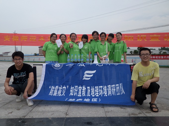 地震具有突发性强、破坏性大、难以预测等特点,是我国今后一个时期面临的主要自然灾害之一。长期以来,我国缺乏必要的防震减灾教育资源和教育环境,公众防震减灾的意识很淡薄,学生缺乏地震应急知识和能力,这些问题在“5?12”汶川大地震和“4?20”雅安地震的悲剧中给了我们沉痛的教训。为了增强公众的防震减灾意识,安徽师范大学的同学们于7月5日来到了位于郯庐地震带地区的巢湖市,为当地的居民宣传“防震减灾”的知识。