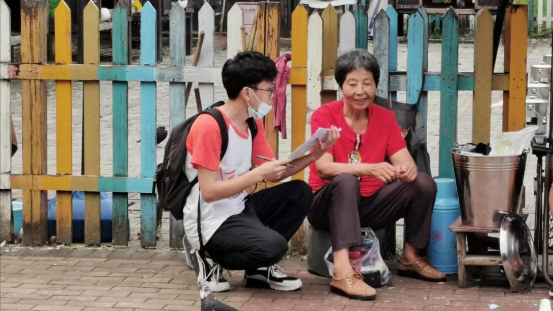 小康社会,关怀老人,队长陈家乐带领小组赴市政大院,副队陈明昱带领赴杏花小区,7月16日6时出发,于7时到达指定小区对老年人个人基本情况、居住情况、日常活动情况、社区感知情况四个专题进行交谈访问,协助老年人完成问卷调查。在同老年人交谈时发现他们和邻居交往非常密切而且非常满意,在没有儿女的陪同下也不会产生孤独感。在对老年人健康方面的问题了解时,老年人不会产生排斥反应而且积极主动配合,说明老年人在一方面还是渴望得到社会的关注。两组同学于16日19时返回共收集96份高质量问卷,后续还会对更多具有代表性小区进行调研。