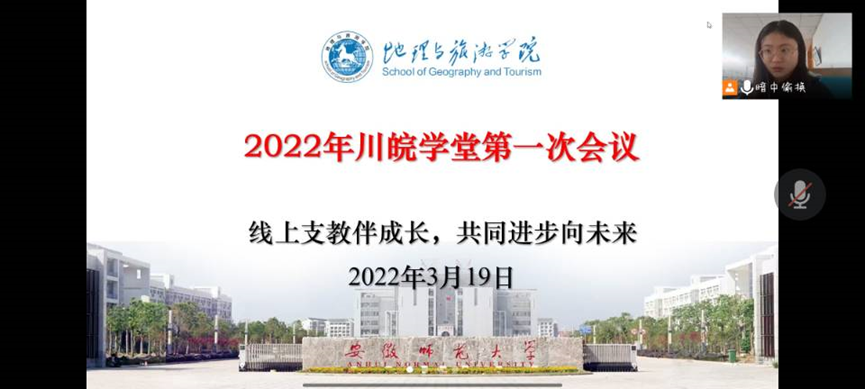 本网讯(地旅学院 韩红豆 张曼其)3月19日,第六届“川皖学堂”线上支教活动正式启动,“川皖学堂”阅读组组长舒玉茹、手工组组长徐斯艺、科普组组长艾棚、徐菁、川队队长苏热叶以及全体“川皖学堂”队员参会,会议由队长张曼其主持。