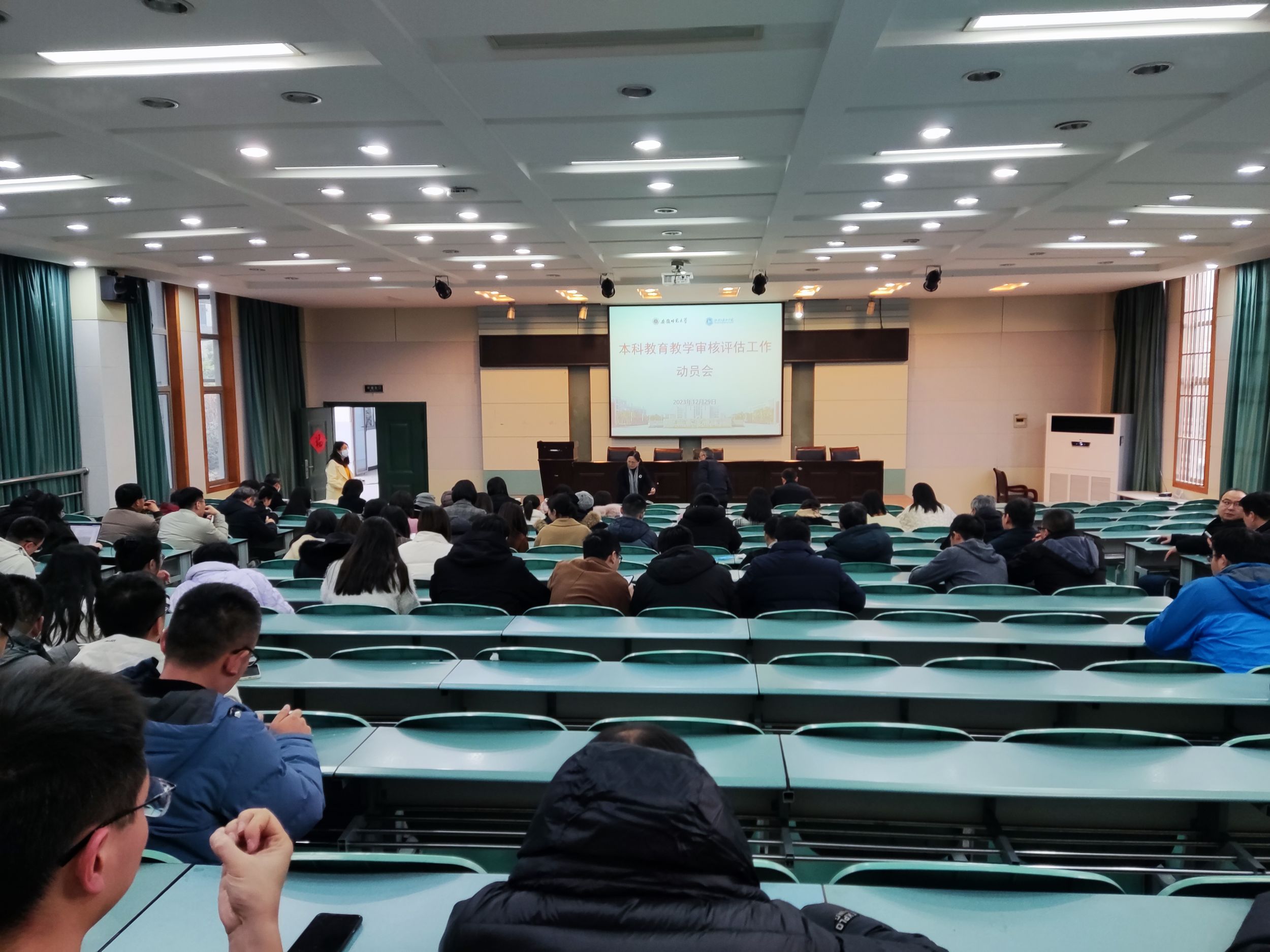 为贯彻落实学校本科教育教学审核评估工作的相关要求,做好迎接审核评估工作的动员和部署,银河galaxy集团于2023年12月29日下午在学院实验楼 101 报告厅召开了本科教育教学审核评估工作动员大会,贾冠忠书记、方凤满院长、付勇副书记、汪文文副院长、全体教职员工参加会议。